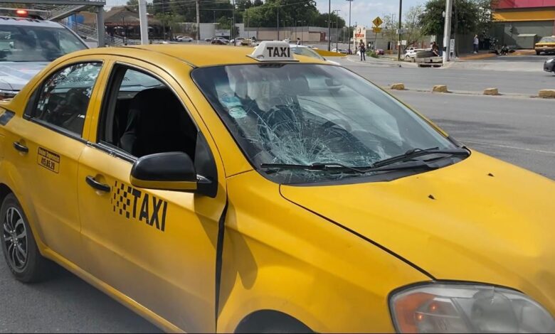 Las huellas del accidente quedaron plasmadas en el taxi, al quedaron destrozado el costado derecho del parabrisas.