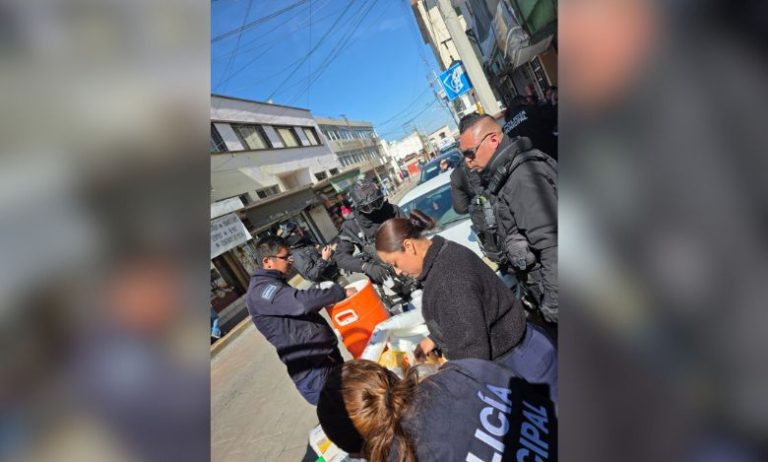 Comparten elementos del Grupo de Reacción Sureste alimentos y bebidas calientes con personas que salieron a las calles a realizar…