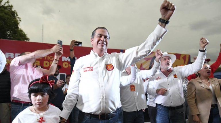 En el municipio de Escobedo, gobernado por el alcalde morenista Andrés Mijes, quien no se guardó elogios para el emecista y lo llamó gobernador constitucional, García dijo que “ni madres que les dejo el gobierno al PRIAN… no les voy a dar el gobierno a los más corruptos de México“, entre aplausos de militantes de MC y funcionarios.