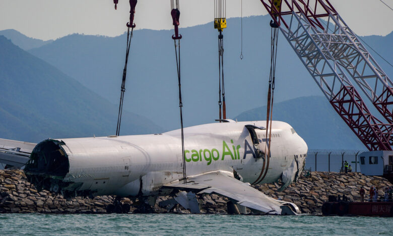 El domingo se recuperaron de las aguas los restos principales de un avión de carga que se salió de la pista en Hong Kong y se precipitó al mar, días después del incidente mortal.